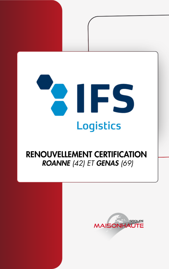 Nous sommes fiers de vous annoncer le 𝗿𝗲𝗻𝗼𝘂𝘃𝗲𝗹𝗹𝗲𝗺𝗲𝗻𝘁 𝗱𝗲 𝗻𝗼𝘁𝗿𝗲 𝗰𝗲𝗿𝘁𝗶𝗳𝗶𝗰𝗮𝘁𝗶𝗼𝗻 𝗜𝗙𝗦 𝗟𝗼𝗴𝗶𝘀𝘁𝗶𝗰𝘀 sur notre site de 𝗥𝗼𝗮𝗻𝗻𝗲 (42) et de 𝗚𝗲𝗻𝗮𝘀 (69). Une étape clé qui confirme l’𝗲𝗻𝗴𝗮𝗴𝗲𝗺𝗲𝗻𝘁 𝗰𝗼𝗻𝘁𝗶𝗻𝘂 de notre entreprise en matière de 𝗾𝘂𝗮𝗹𝗶𝘁𝗲́, de 𝘀𝗲́𝗰𝘂𝗿𝗶𝘁𝗲́ et de 𝗰𝗼𝗻𝗳𝗼𝗿𝗺𝗶𝘁𝗲́ 𝗱𝗲𝘀 𝗳𝗹𝘂𝘅. 👉Cette certification reflète : – la maîtrise de nos processus logistiques – …